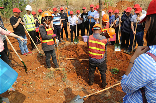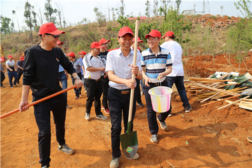 到达植树地点后,陈定华为本次活动作动员讲话。他说,公司深入践行绿色发展理念,推进生态文明建设是贯彻落实党的十九大精神,用实际行动践行“绿水青山就是金山银山”理念。营造全员爱绿、植绿、护绿、养绿的浓厚氛围,调动广大干部职工植树绿化的积极性和主动性,感受美化环境的意义,激发热爱生活、热爱自然家园的热情,把建设美丽中国转化为二建人的自觉行动。